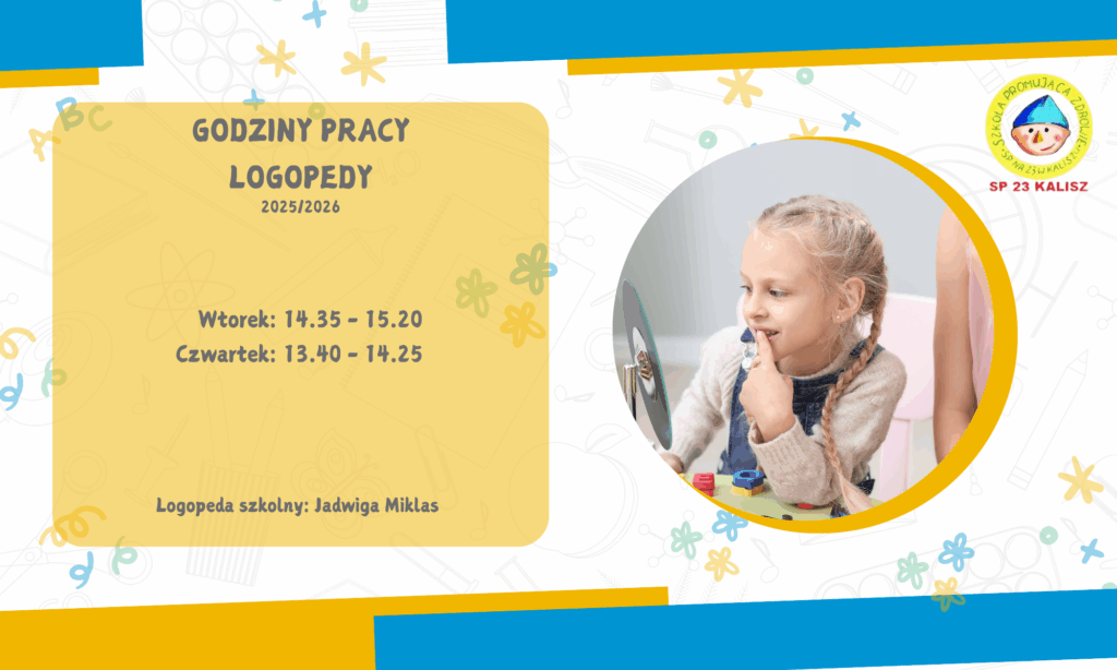 Informujemy, że w naszej szkole dostępny jest logopeda. Wszystkie dzieci mają zapewnioną profesjonalną opiekę logopedyczną na miejscu. Dzięki temu możemy wspierać rozwój mowy i komunikacji naszych uczniów, pomagając im